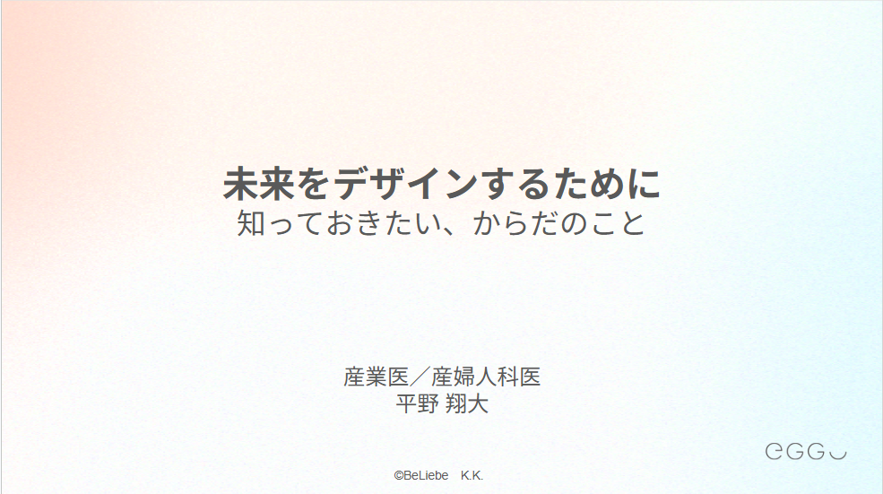 続いて登壇したのは、産婦人科医を経て産業医として就労女性の健康について取り組んでおられる平野翔大先生です。「未来をデザインするために知っておきたい、からだのこと」をテーマに、双方向型のコミュニケーションも含めたインプットセミナーが進められました。