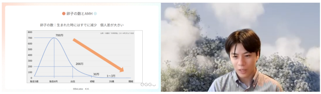 さらに、「子どもを何人・どのくらいの確率で持ちたいか」によって、妊活を始めるおおよその推奨年齢が変わるシミュレーション統計データも紹介。あくまで“締め切り”ではなく「ライフプランを考えるための目安」として、数値やグラフをもとに、年齢が妊娠率に与える影響が分かりやすく解説されました。