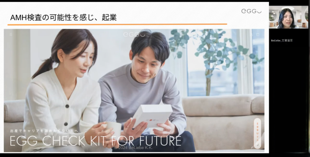 9月11日に行われた基礎知識編では、冒頭に挑戦したいキャリアへの思いと「自分はいつまで子どもを産めるのか」という不安の間で揺れた代表 志賀の原体験、そして同じ悩みを抱える女性が多いことに気づいてから、BeLiebe創業に至るまでのストーリーを語り、参加者に自分自身のことを振り返ってもらうきっかけの時間となりました。
